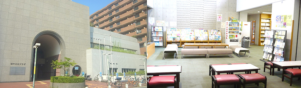 3 右手の潮田交流プラザ奥にある階段またはエレベーターで2階に上がると地区センター入口です。